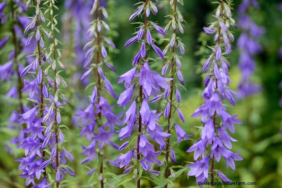 Campanula lactiflora is a particularly floriferous, clump-forming campanula with large heads of clustered flowers in summer. ‘Prichard’s Variety’ (pictured) is a popular variety with pale, violet-blue flowers. Plant it in full sun or partial shade in moist, well-drained soil.