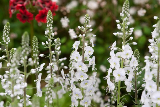 - Veronica gentianoides ‘Tissington White’ – forms a dense mat of thick, dark green foliage, from which tall spires of white/pale blue flowers appear in early summer. It’s a magnet for bees and looks good growing among other perennials at the front of a mixed herbaceous border.
