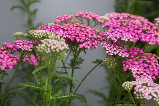 Achilleas, or yarrows, are traditional border perennials, but they also make great container plants. They have feathery foliage and beautiful, flat-topped flowers that bloom right through the summer. They range from white and yellow to shocking pink and deep red, and the flat flower heads make the perfect landing platform for pollinators, particularly hoverflies.