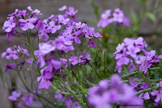 Sweet rocket, Hesperis matronalis, is a pretty biennial, bearing white or purple flowers similar to honesty. The flowers’ sweet fragrance is most pronounced in the evening, so plant it in a pot near where you sit outside in the evening, so you can enjoy the scent with dinner or a glass of wine. Deadhead spent blooms to prolong flowering,