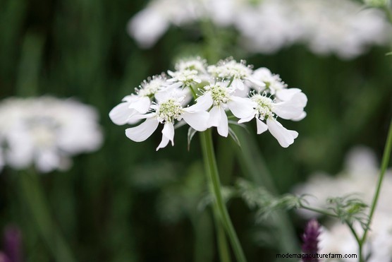 There are annual and perennial varieties of scabious – all are loved by pollinating insects. The flowers are shaped like little pincushions, hence its common name of pincushion flower, and come in shades of white, blue, pink and purple. It grows best in full sun.