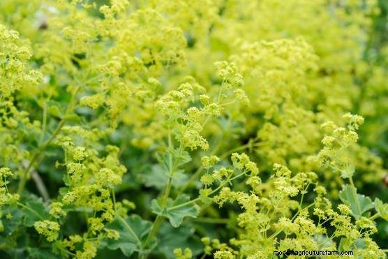 Alchemilla mollis has frothy lime-green summer flowers and neatly pleated fan-shaped leaves. It’s ideal for pots in sun or shade, or as a ground cover plant in borders. Cut back foliage hard in late summer to encourage a new flush of leaves. It has a tendency to self-seed.
