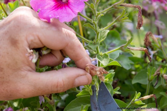 Picking off faded and dead flower heads keeps petunias looking good and encourages more flowers to be produced. Trailing varieties that become straggly later in the season can be lightly trimmed. Feed at the same time which will boost new growth.