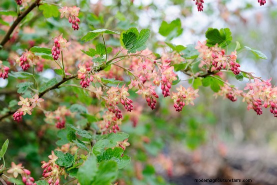 Flowering currant (Ribes sanguineum) has hanging clusters of tubular flowers, in shades of white, pink or crimson, which hang from gracefully arching branches in March and April and provide lots of early nectar for bees. They can also be grown as an informal flowering hedge. Grow in a sunny spot, in moist soil.