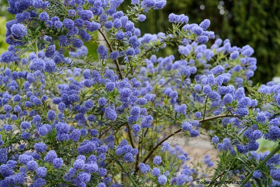 Californian lilac, or ceanothus, bears masses of gorgeous blue flowers in May. Many varieties are evergreen, some deciduous, and their size can vary from large shrubs to small trees. They are a good choice for a sunny, sheltered garden. The prostrate forms of ceanothus work well as ground cover.