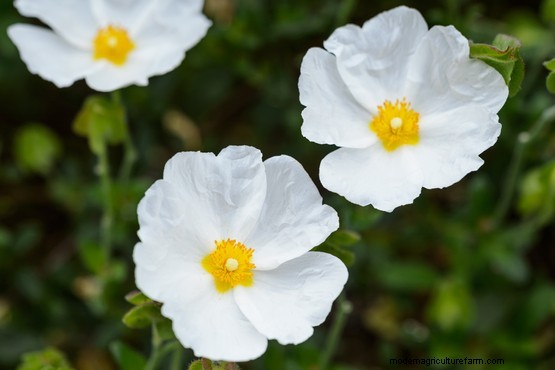 Rock rose (Cistus) produces masses of crumpled papery flowers, mostly in shades of pink or white, in midsummer. Each bloom only lasts only one day, but they are borne in abundance so the plant always puts on a good show. Grow in the middle of a sheltered, sunny, well-drained border. This low maintenance evergreen tolerates chalky soil and is a good choice for a seaside location. It’s a compact shrub so good for smaller gardens.