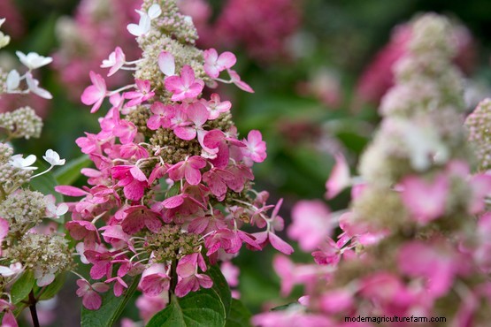 The huge flower heads of hydrangeas come in a range of shapes, from large balls to cones, and in a wide range of colours including white, lime green, pink and blue. They flower for weeks, usually starting in midsummer and continuing well into autumn. The foliage on some can be dramatic in autumn, too. Hydrangeas do best in moist, well-drained soil and dappled shade.