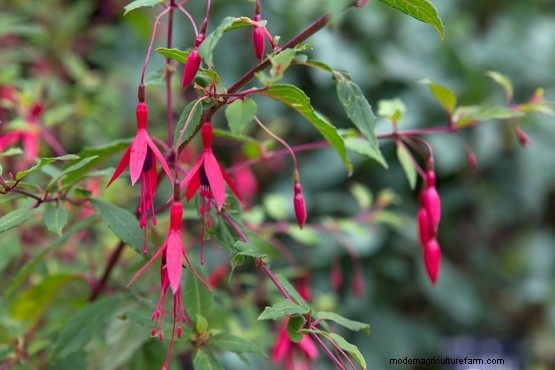 Fuchsias have distinctive bell-shaped and bi-coloured flowers that look like dancing ballerinas. The flowers bloom all summer and well into autumn, and there are many varieties available, in shades of white, pink, magenta, purple and red. Some varieties have golden or variegated foliage, or purple or red-tinged leaves, too. Some, such as Fuchsia magellanica, can be grown as a flowering hedge. Most fuchsia shrubs are hardy. Grow in a sheltered, sunny spot in well drained soil.