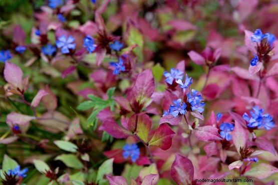Also known as hardy plumbago, ceratostigmas have unusual blue flowers that last well into October, contrasting nicely with the plum-coloured autumn leaves. They look great paired with asters. Grow towards the front of the border, in full sun or partial shade. Ceratostigma is drought-tolerant when established and the flowers are loved by bees.