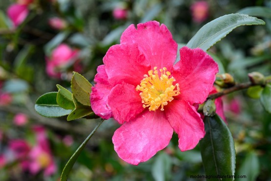 Camellia sasanqua is one of the few shrubs that flowers in November and December, when little else is in flower. It attracts bees and other pollinators, at a time of year when little nectar is available. Grow in acid soil, or in a pot filled with ericaceous compost, somewhere you can enjoy its evergreen foliage and winter flowers, in partial shade.