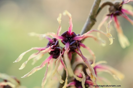 Hamamelis, or witch hazel, is a popular shrub for the winter garden. It has scented, spidery flowers in shades or yellow, orange or pink, which provide early pollen for honey bees. Some cultivars also have good autumn leaf colour. Grow in neutral or slightly acidic, well-drained soil, in sun or partial shade. Chinese witch hazel, Loropetalum chinense, is more compact, with the same spidery flowers and very attractive red, evergreen foliage.