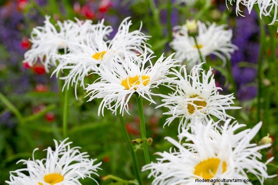 Shasta daisy is a vigorous perennial and benefits from an annual mulch of compost or manure, and a late winter/early spring feed with slow-release fertilizer. Support tall-growing varieties, ideally with grow-through supports put in place during spring that quickly become hidden. Either buy ready-made ones, make your own from canes and string or use twiggy hazel stems bent over or around the clump. Deadhead regularly by cutting flowered stems to the base.