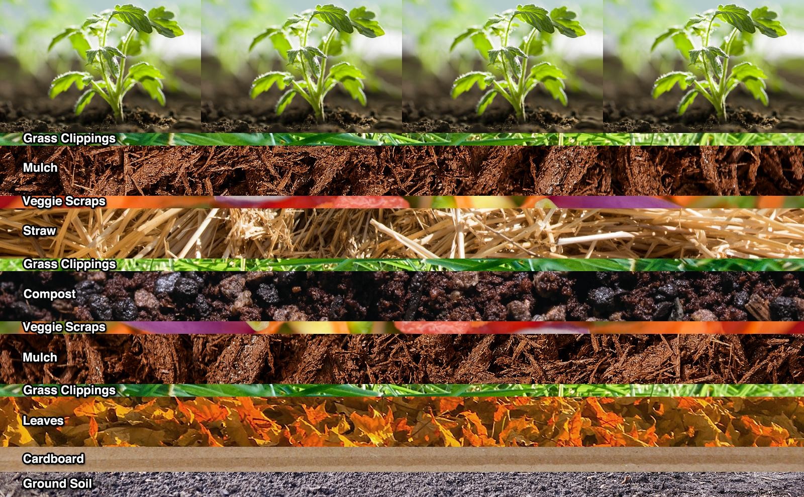 As the growing season progresses, continue to follow the 4:1 ratio while adding compostable materials to the top to keep a steady supply of new nutrients coming into your plot. Pull weeds as they appear, and water as needed. In future growing seasons, add alternating layers to the top as needed.