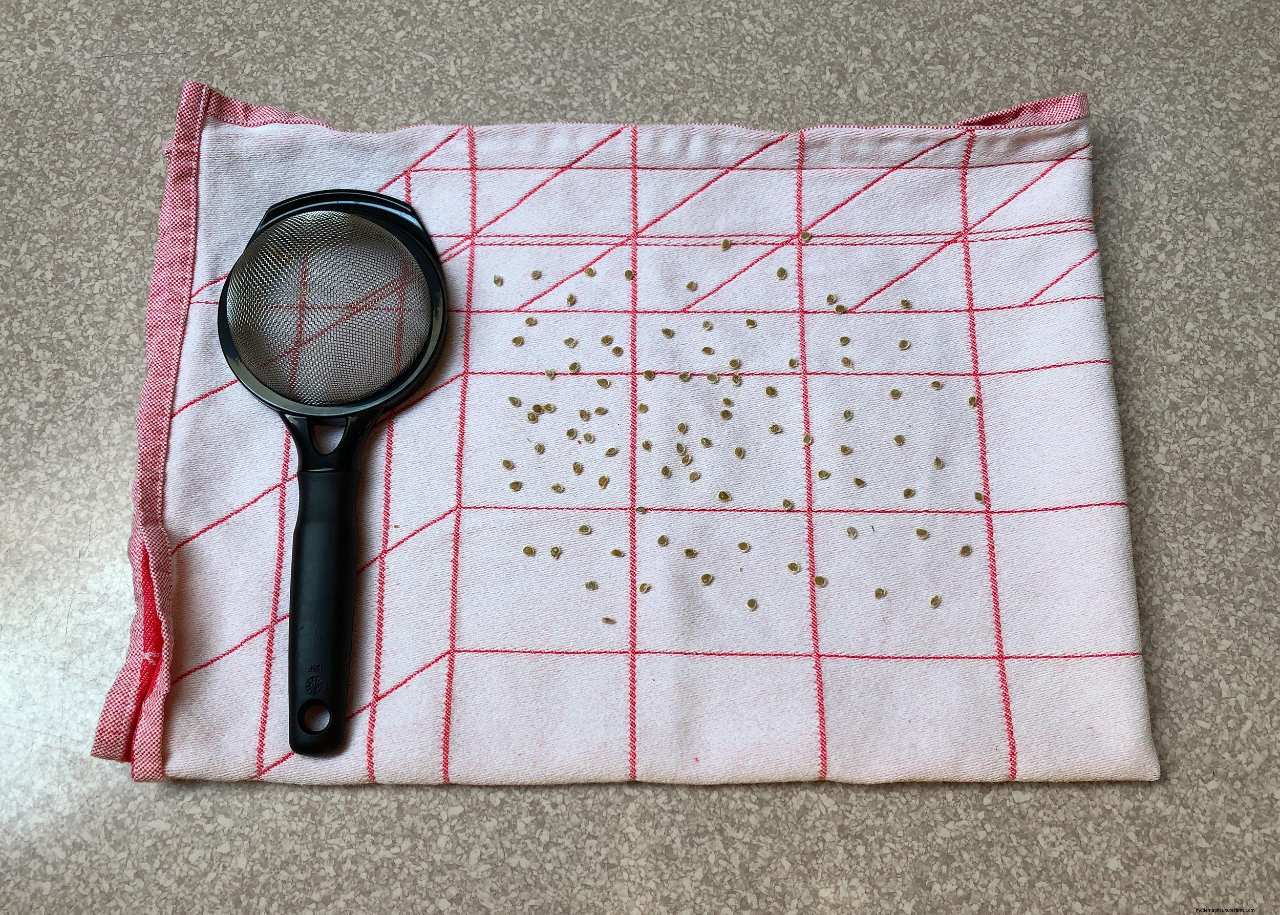 - Lay your seeds on a flat surface covered in wax paper, newspaper, or a tea towel (paper towels can stick to the seeds).