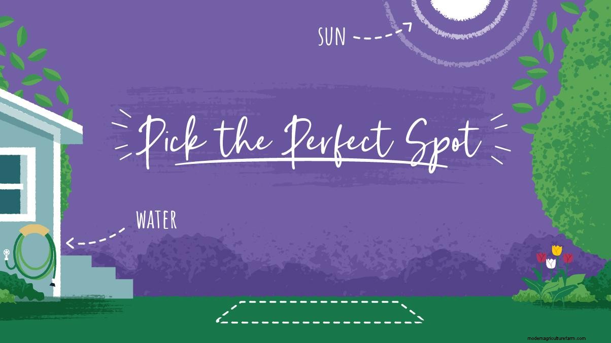 Choose a level spot that gets a lot of sun and is close to a water source. If the area is grassy, simply mow it short (let clippings lie) before building your bed.