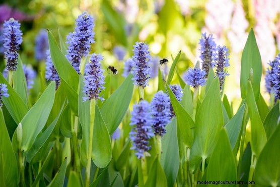 Pickerel weed is one of the best marginals for injecting some colour into pond planting schemes. In late summer, the sword-shaped leaves form a green backdrop for masses of bright purple flowers that attract pollinating insects.