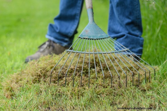 Use a spring-tined rake to rake moss from lawns to encourage grass to grow more vigorously.