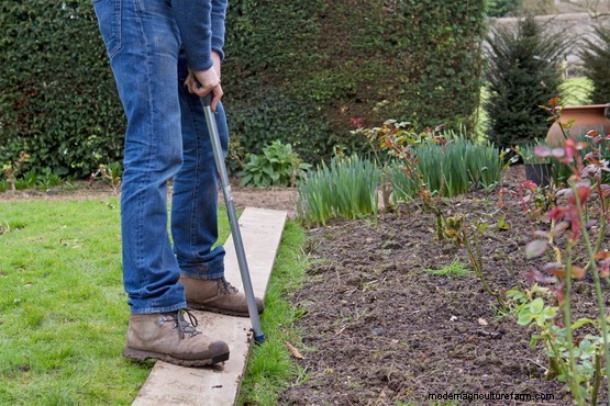 Recut edges using a half-moon iron or spade. You can do this by eye, but you’ll get a better result by following the line of a scaffolding plank or other sturdy plank of wood, some taut twine or a snaking hosepipe if you want smooth curves.