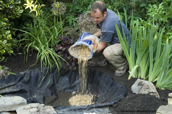 In a sunny spot, dig a hole 45-60cm deep and lay pond liner or thick polythene in the base. Make drainage holes, then pour in a 3-5cm layer of grit or gravel.