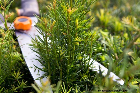 Most hedging plants, such as yew, produce a proliferation of side-shoots when the main stems are cut back.