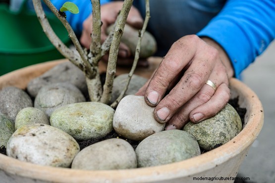 Cover the surface with a mulch of gravel or cobbles to help retain moisture in the compost and prevent weeds germinating.