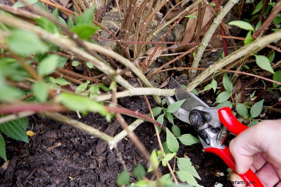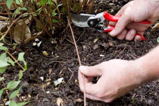Prune out three or four of the oldest, thickest stems. Use secateurs (or loppers for thicker branches) to cut these low down, close to the soil. This will encourage the growth of new shoots to ensure a succession of flowering stems in future years.