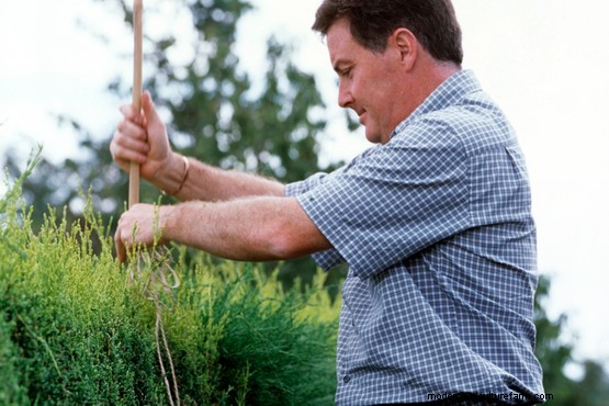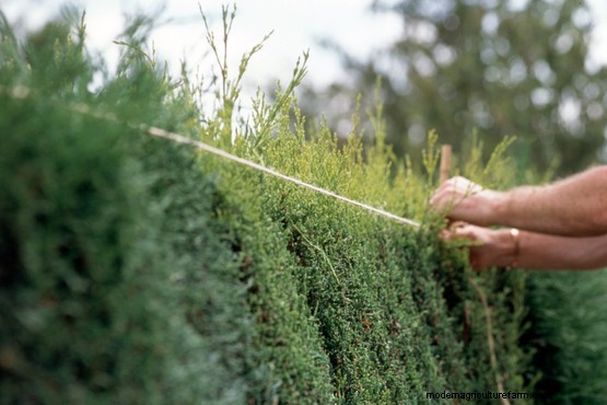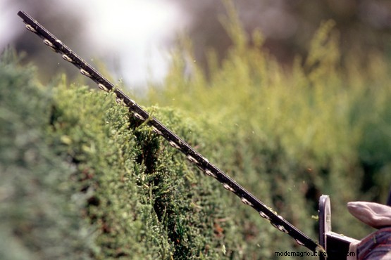 The easiest way to trim an established conifer hedge such as Thuja plicata is by using a powered hedge-trimmer to give a regular, even finish. Quick-growing conifers will need about three cuts per year during the growing season, at roughly eight week intervals.