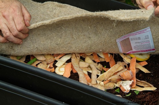 Cover the worms and bedding material with a thin layer of well-chopped vegetable peelings. As these begin to rot, the worms will be able to start feeding on them. Most kits also come with a mat that should be used to cover the material to maintain moisture in the bin.