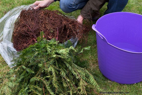 Dig a planting trench that is wide enough for the roots to spread out. If adding mycorrhizal fungi, which are particularly beneficial to bare-root plants, sprinkle over the wet roots and mix into the excavated soil. Place the plants at the same depth they were growing previously, then backfill the hole and firm down well. But take care not to over-compact the soil around the plants’ small root systems.