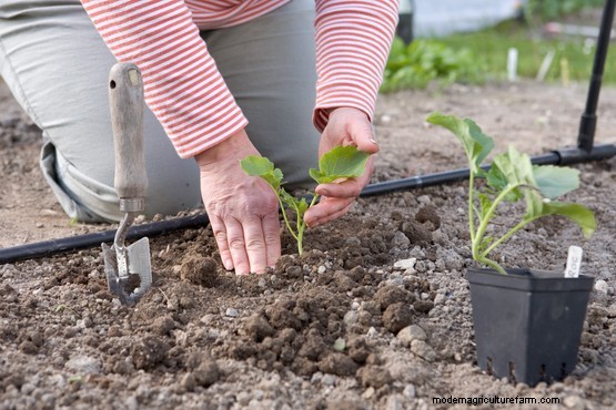 Fork the soil over, removing large stones, debris and perennial weeds. Bulky organic matter is essential on lighter soils – even on heavy soil, it’s worth adding to improve moisture retention and texture. You may need to add lime if your soil is acidic. Brassicas dislike loose soil, so firm lightly with your foot.