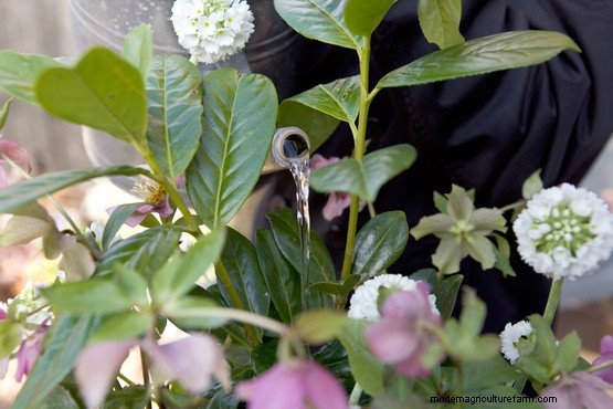 Give your early spring container a good water to settle the compost around the roots. Fill gaps with more compost.