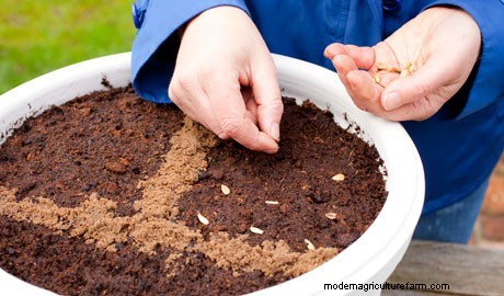 Fill the pot with the compost mix, topping it off with a 3cm layer of seed compost. Water with a fine rose.
