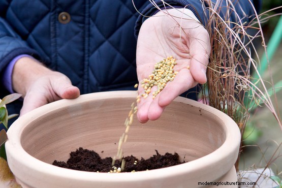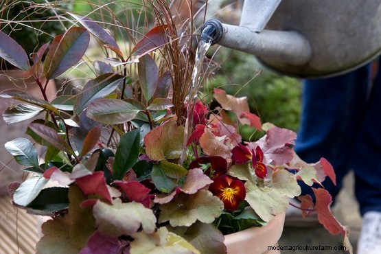 In this stylish pot, a purple osteospermum and hebe combine with a green fern for a classy, long-lasting display. The striking, colourful foliage of the hebe complements the flowers. Choose plants that vary in height to make a display with interest at all levels – ferns are ideal for the ‘backbone’ of a pot. The fern that we’ve used, Dryopteris affinis, is semi-evergreen, and the hebe is evergreen, which means you could switch the osteospermum for a winter bedding plant when summer ends.