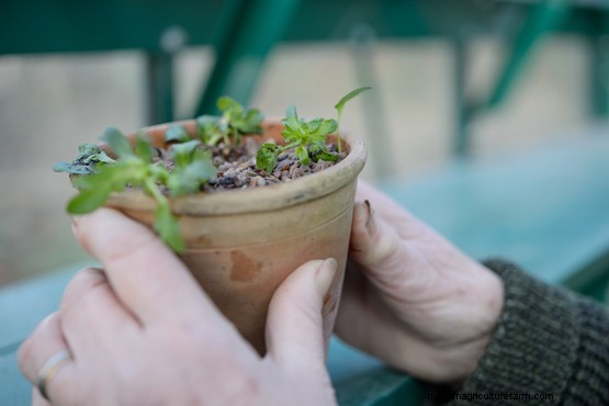Fill small pots with gritty compost. Make holes at the edge of the pot and pop in the cuttings up to their bottom leaves.