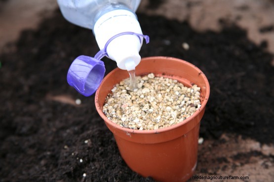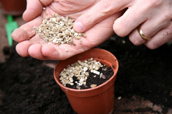 Lightly firm the seeds in place using the base of an empty pot, then cover the seeds with a fine layer of vermiculite, horticultural sand or more seed compost.