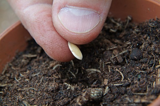 Sow two seeds per pot of seed compost in a 9cm pot. Water well, and then place the pots in a propagator at a temperature of at least 18°C (65°F). Keep the propagator in a well-lit position.