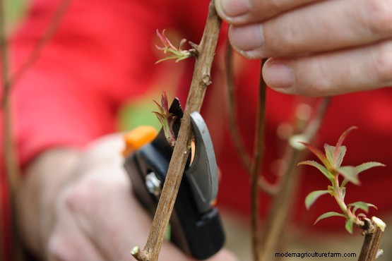 Where stems are growing close together or crossing, cut out one to prevent them from rubbing together which may damage the bark and cause die-back or disease.