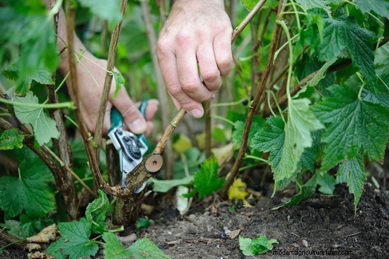 Cut out any old or dead wood at the base of the plant to encourage strong new shoots from the base. You may need to use long-handled loppers for more leverage if the wood is thick and tough.