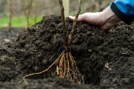 Spread the roots around the hole then backfill with soil enriched with compost to cover them, firming with your boot to remove any air pockets.