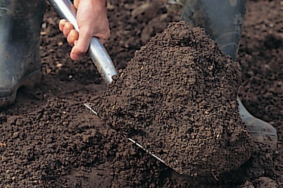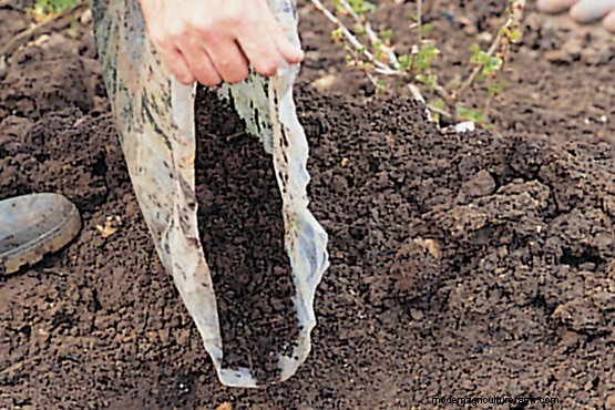 Tip plenty of garden compost into the hole and fork it deep into the soil.