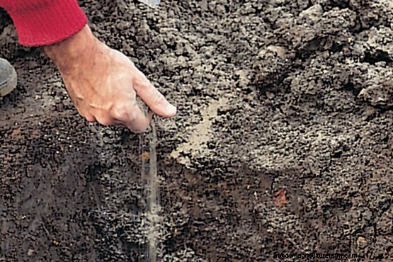 Sprinkle a handful of fertiliser in the hole and fork it into the soil.