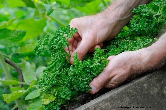 When cutting parsley, always remove the whole leaf, together with the leaf stalk, nipping it back to where it joins the clump. Avoid harvesting the oldest leaves as these tend to be tough.