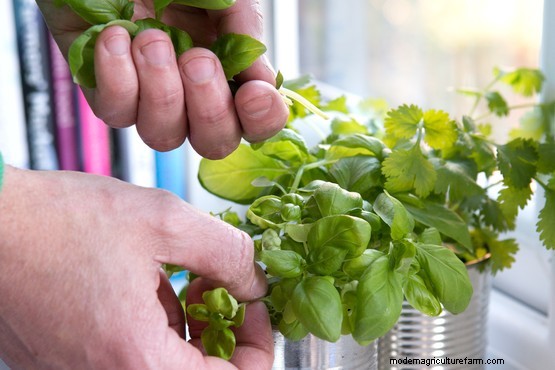 When harvesting basil, nip out with scissors or between finger and thumb, the tips of the plants back to just above a pair of leaves. New growth will emerge at this point. Don’t nip just below the leaf, leaving a short stem, as this will simply wither.