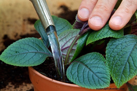 Once a good root system has developed, pot the cuttings in compost. Keep the compost moist and pinch out tips to encourage branching of plants.