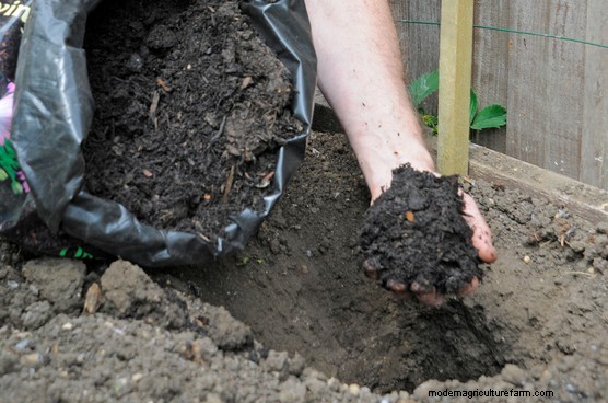Add a deep layer of well-rotted manure, home-made compost or or peat-free multi-purpose compost to the bottom of the hole, to increase nutrients and aid moisture retention.