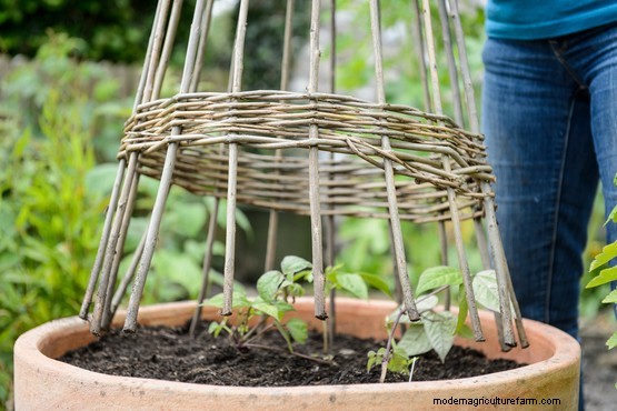 Climbing beans are hungry plants, so plant them in a big pot where they have plenty of sunshine. Water them regularly.