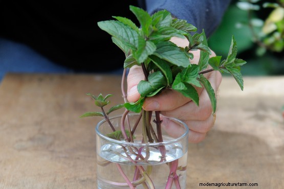 Take cuttings from the top growth of your mint plant, about 8cm in length. Remove the lower leaves and cut the stem just below the leaf node (the point on the stem where leaves emerge).