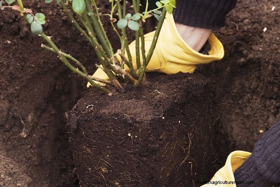 Use a garden fork to loosen the base of the hole, mixing in a couple of handfuls of compost, together with a little bonemeal. Add some more compost to the excavated soil.