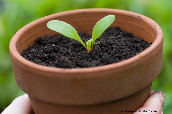 Seedlings should appear within two to three weeks. Once the first true leaves appear, transfer each seedling to its own pot, holding it by the leaf not the stem. Keep watered and in a frost-free place.