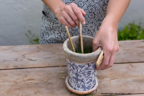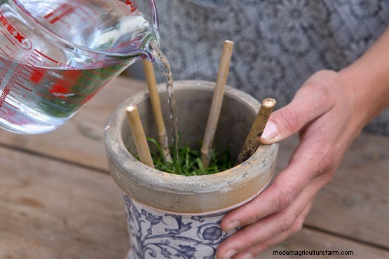 Add twigs or bamboo, placed vertically so the larvae will be able to climb up from the bottom when they’re ready to pupate.